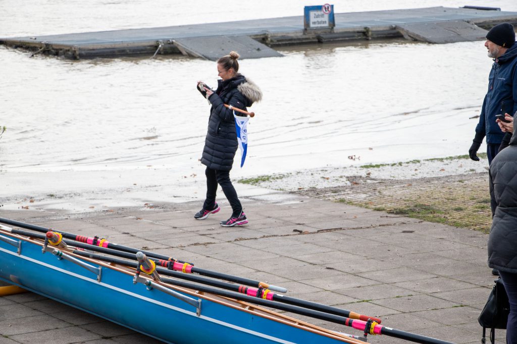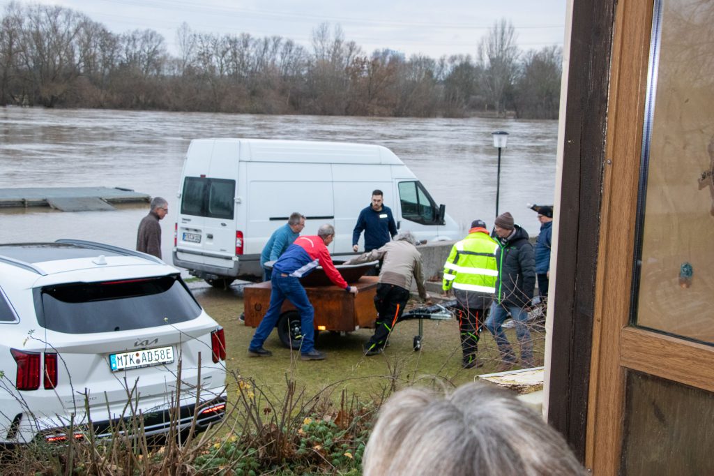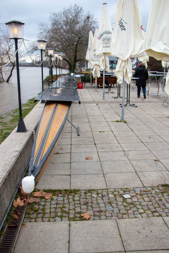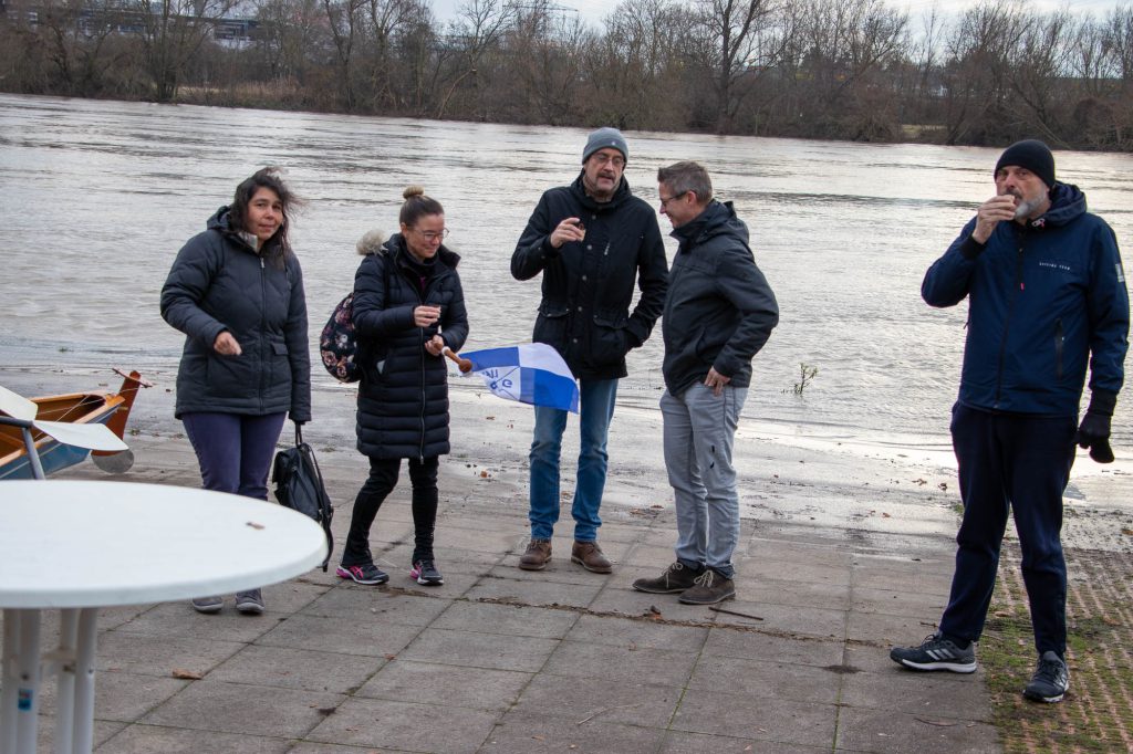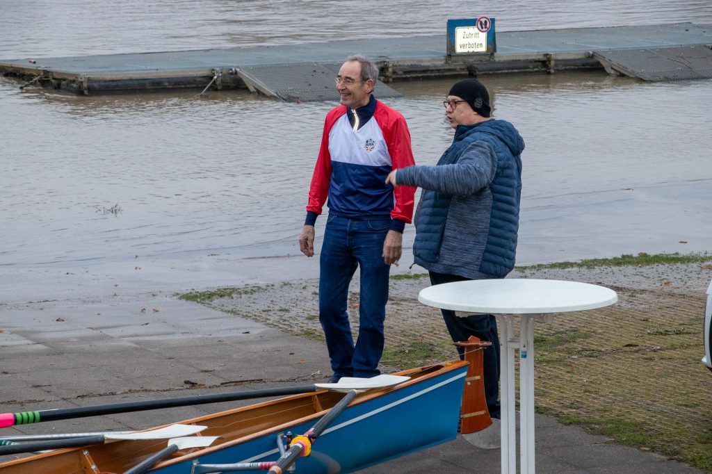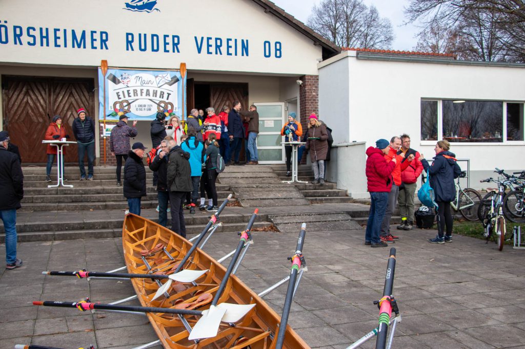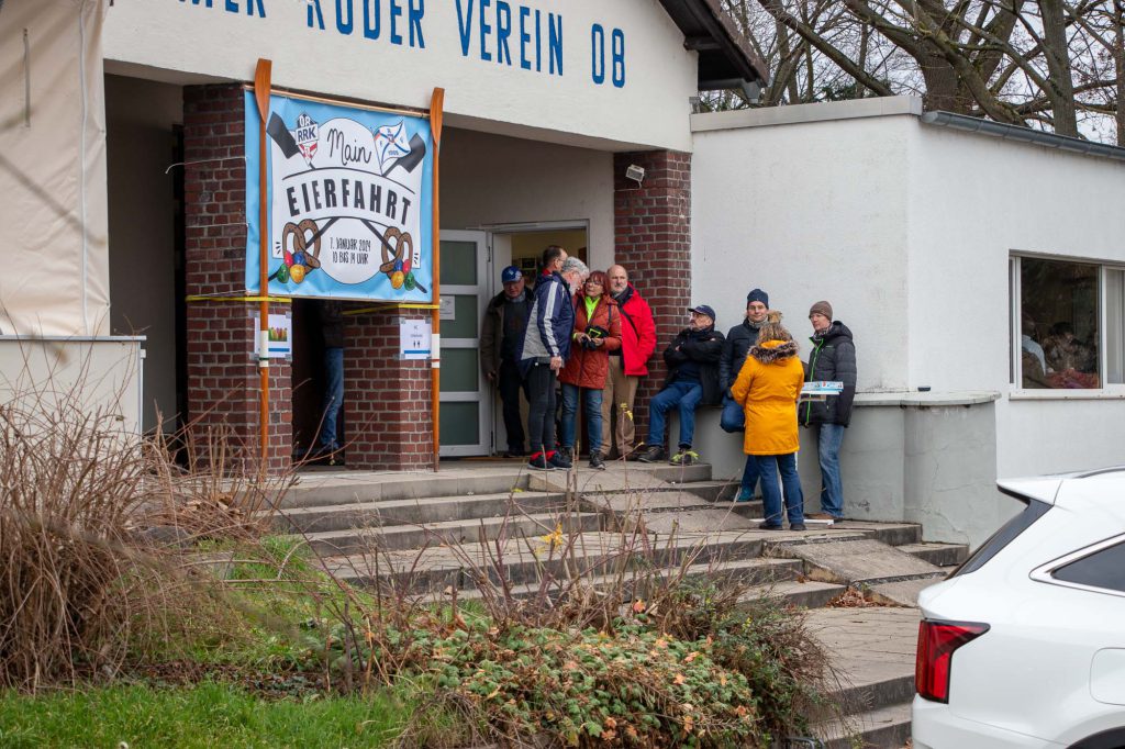 Beinahe stündlich prüfte das Organisationsteam die Prognosen der Pegelstände an Main und Rhein, um dann am 3.Januar final zu entscheiden: “das Bootshaus wird trocken bleiben, die Eierfahrt findet statt, aber wir werden die Gäste bitten, wegen der enormen Strömung auf eine Anfahrt im Boot zu verzichten. Zudem werden die Schleusen Eddersheim und Kostheim bis mindestens Sonntag gesperrt bleiben.