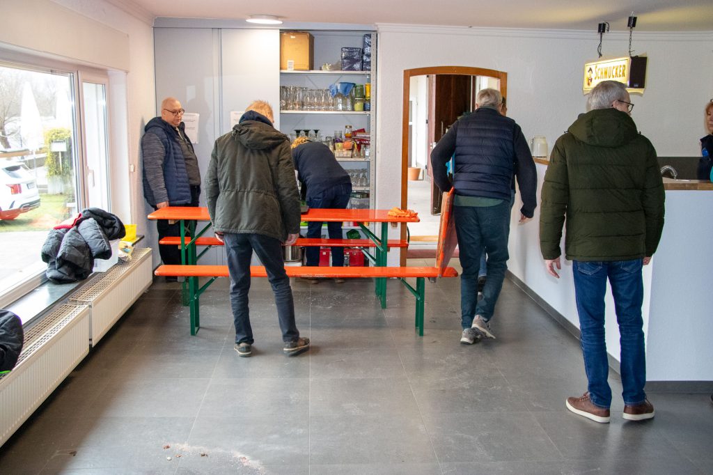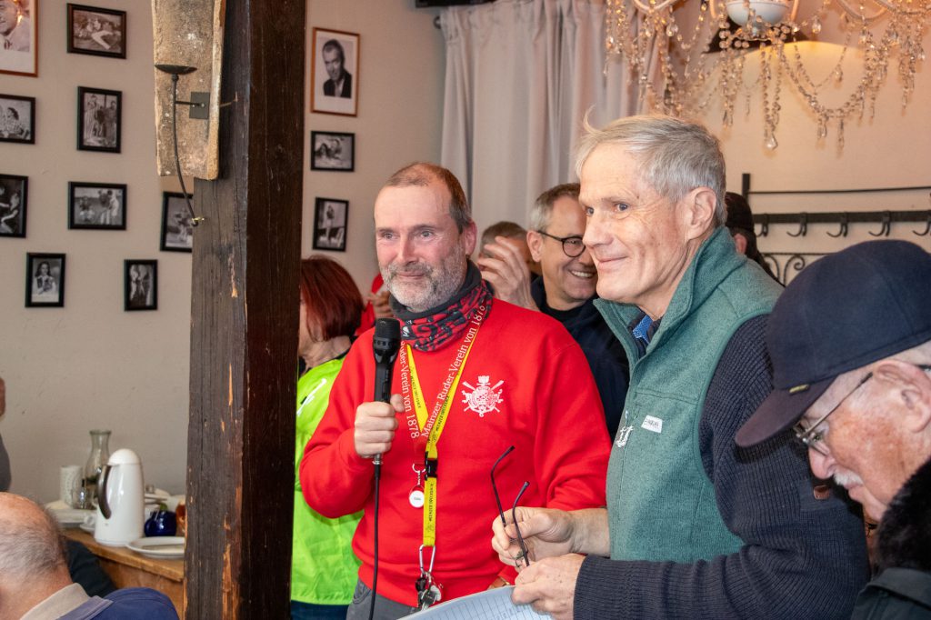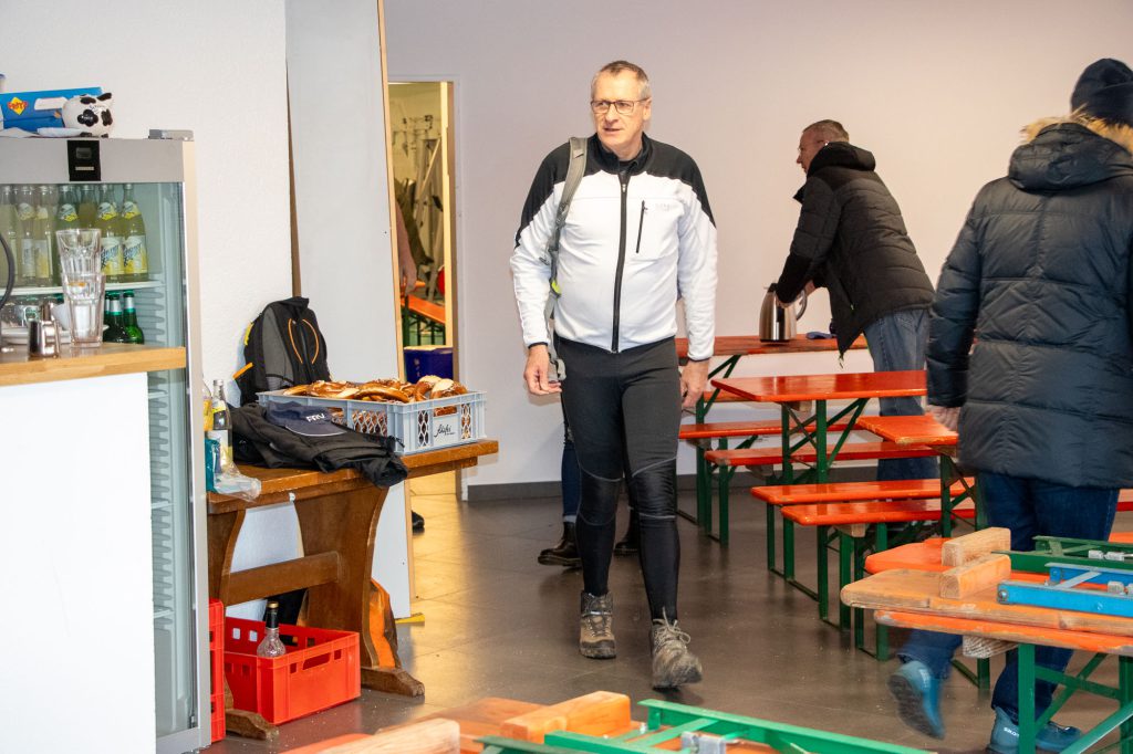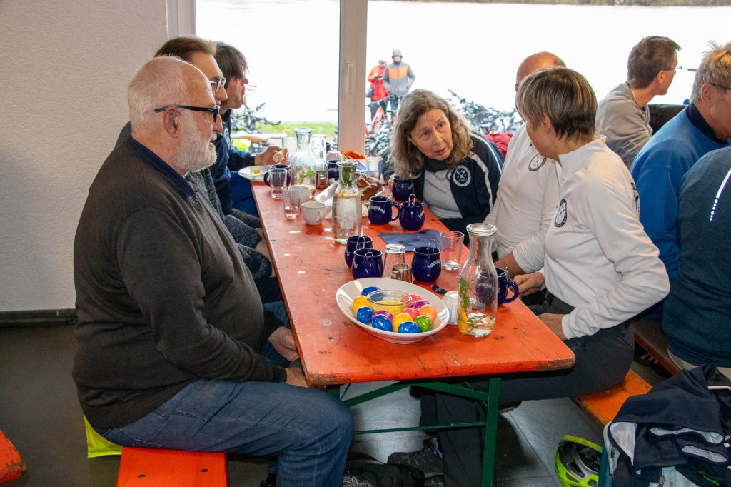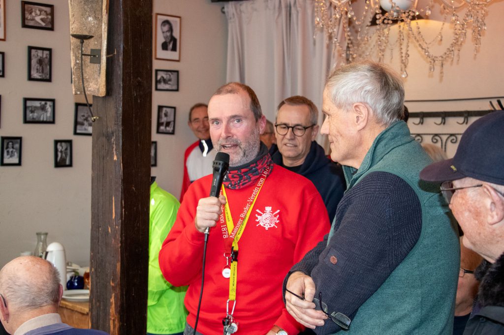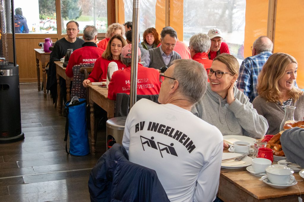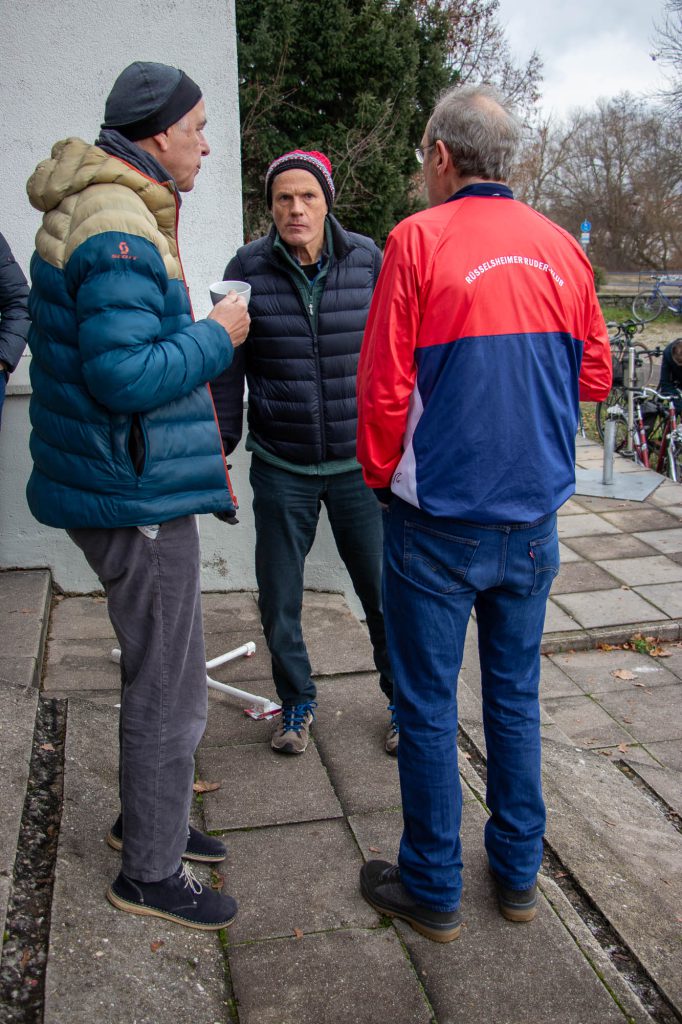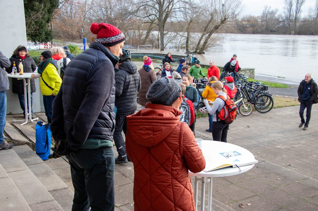 Bereits kurz danach kam die erste Gruppe vom MRV und kündigten das baldige Eintreffen von etwa 30 Vereinskameradinnen und –kameraden an, die sich trotz winterlicher Temperaturen per Fahrrad von Mainz aus auf den Weg nach Flörsheim machten. Und so ging es weiter. Am Ende des Tages konnten unser erster Vorstand Ludger Schader und Spartenleiter Horst Aussenhof vom RRK etwa 160 Besucher aus 12 Vereinen begrüßen.