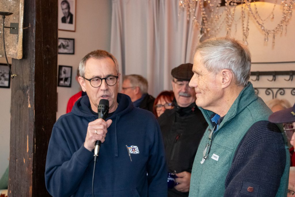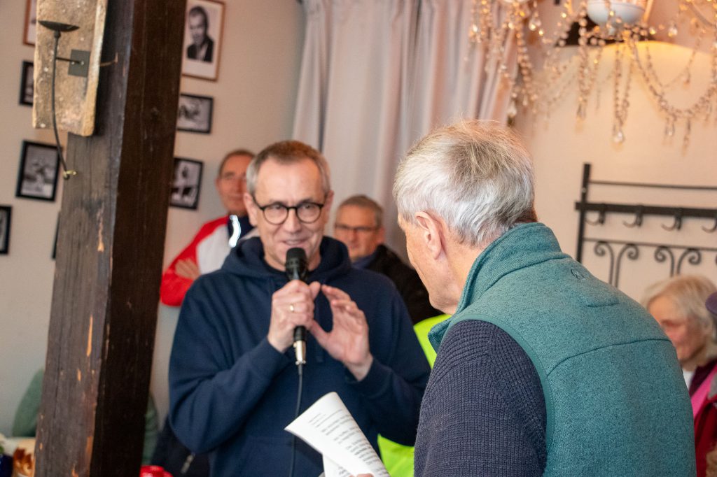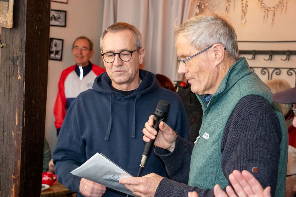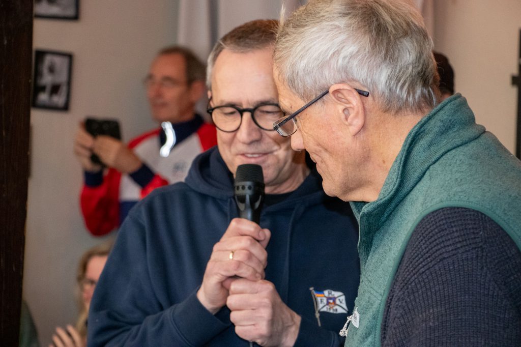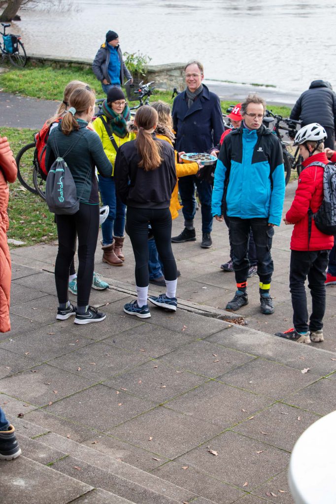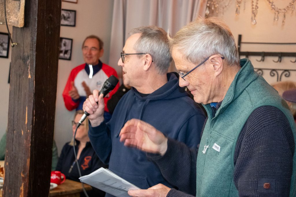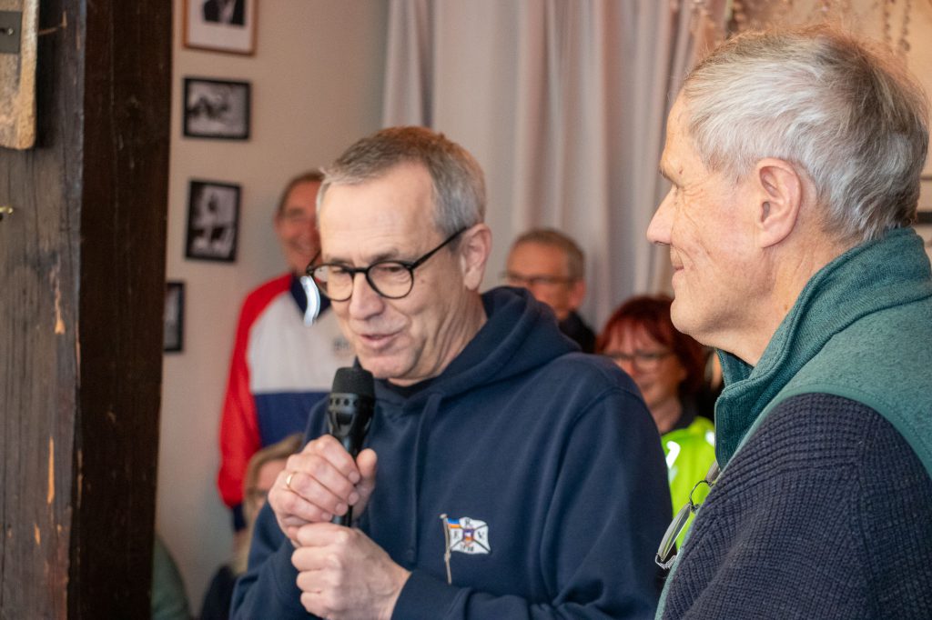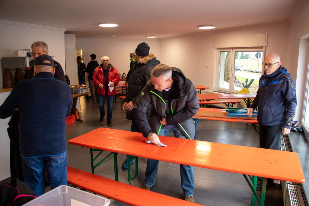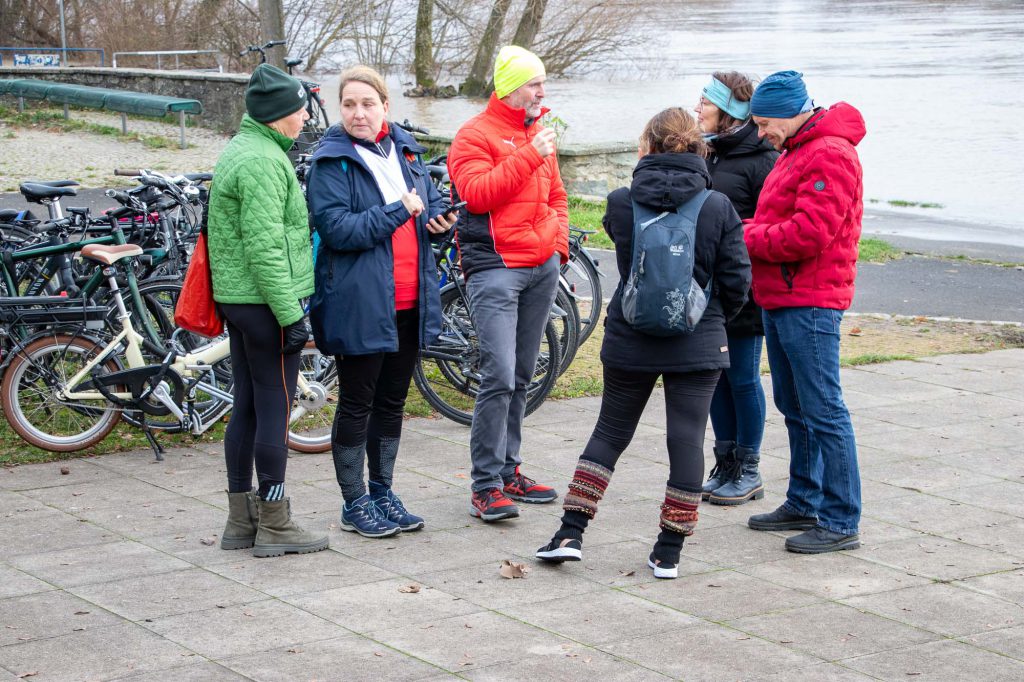 Bereits kurz danach kam die erste Gruppe vom MRV und kündigten das baldige Eintreffen von etwa 30 Vereinskameradinnen und –kameraden an, die sich trotz winterlicher Temperaturen per Fahrrad von Mainz aus auf den Weg nach Flörsheim machten. Und so ging es weiter. Am Ende des Tages konnten unser erster Vorstand Ludger Schader und Spartenleiter Horst Aussenhof vom RRK etwa 160 Besucher aus 12 Vereinen begrüßen.