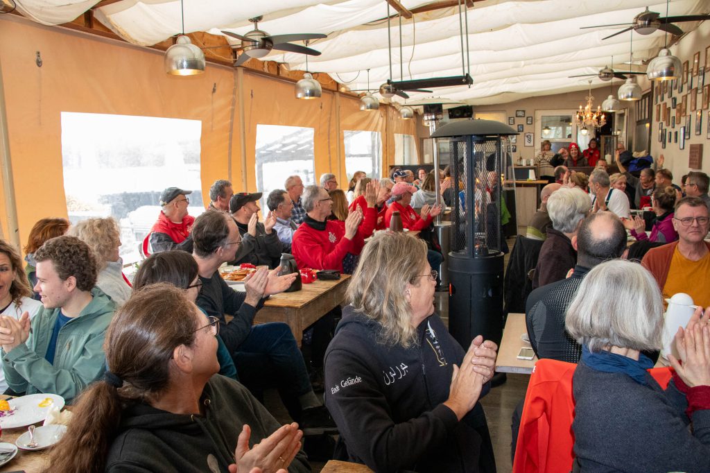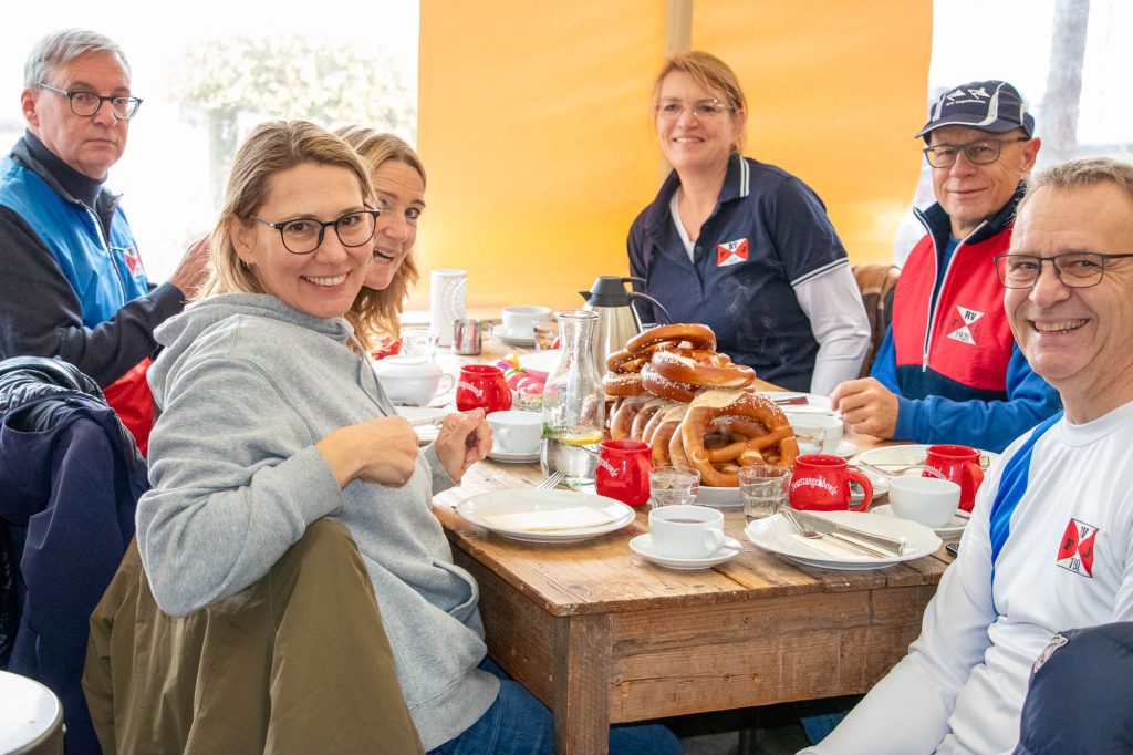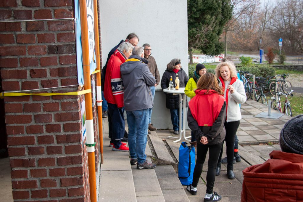 Ab Sonntag um 9:30 Uhr erwarteten wir am Parkplatz und dem mittlerweile liebevoll geschmückten Bootshaus mit leichtem Lampenfieber die Gäste. “Wie viele werden denn überhaupt kommen, wenn nicht gerudert werden kann? 50, vielleicht 70?”