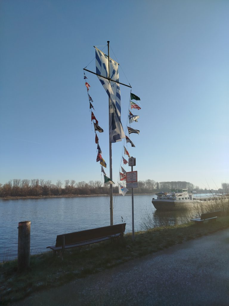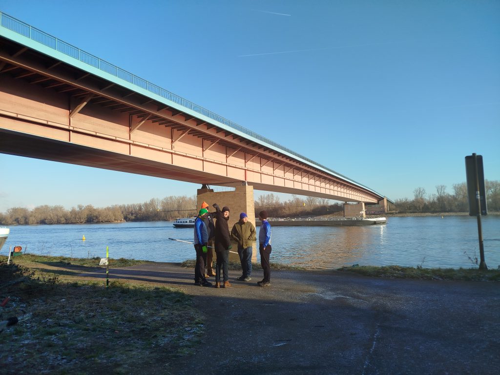 Der 11. Januar zeigte sich von seiner schönsten Seite: strahlend blauer Himmel, klare Luft und Sonnenschein. Eigentlich ideales Ruderwetter – wären da nicht die Temperaturen deutlich unter dem Gefrierpunkt gewesen. Da wollten wir nicht das Risiko eingehen, lange Zeit auf die Schleusung in Kostheim zu warten.