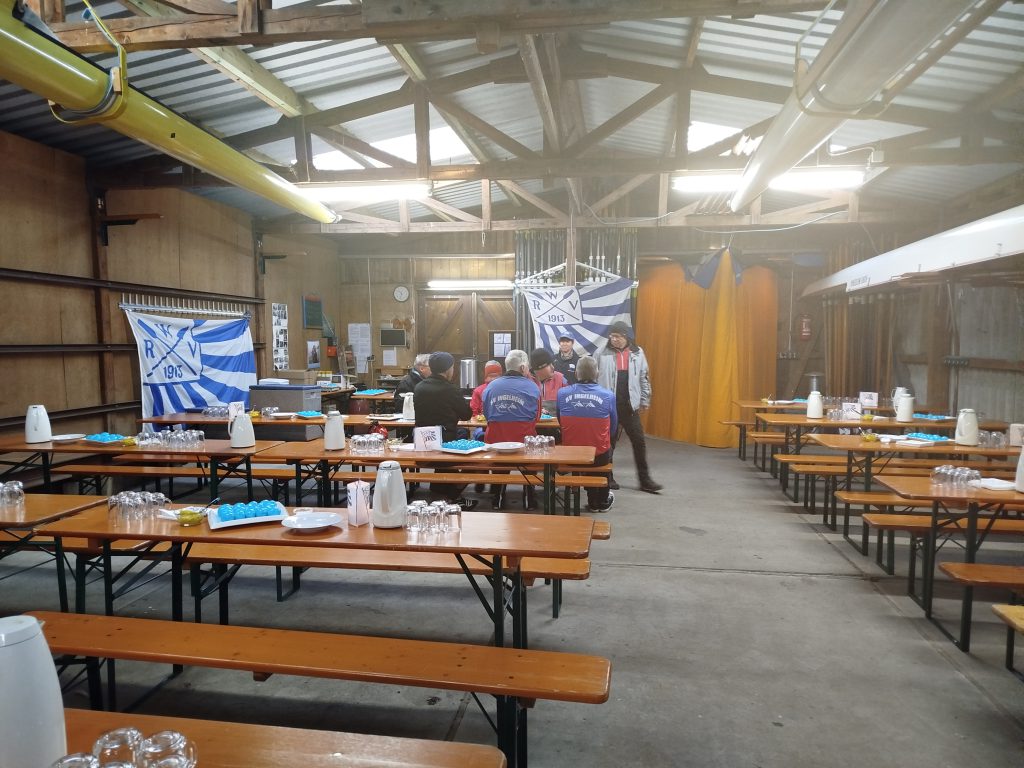 Trotz der anfänglichen Kälte in der Bootshalle waren alle Gäste mit der Organisation hoch zufrieden. Da störte auch der enorme Geräuschpegel nicht. Man freute sich einfach nur, bekannte Gesichter anderer Vereine wiederzusehen und bei stilvoller Dekoration und den vielen blau gefärbten Eiern zu fachsimpeln und Pläne für die kommende Saison zu schmieden.
